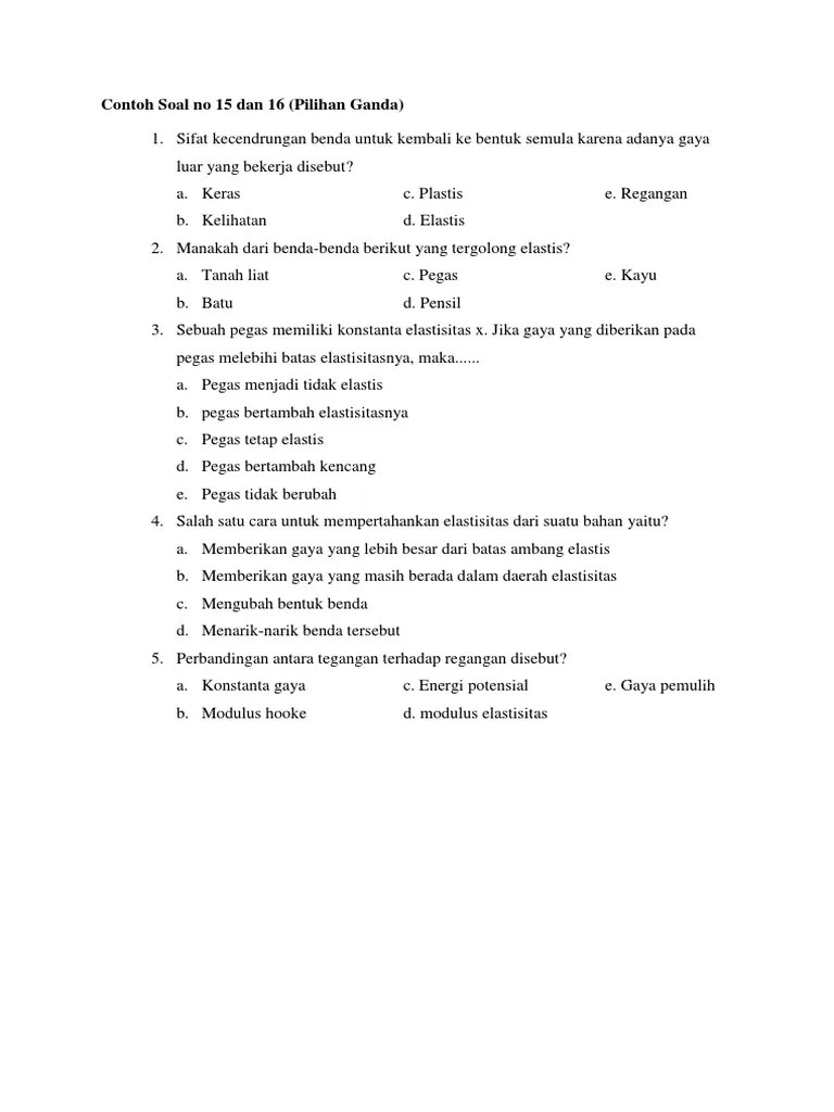 23+ Contoh Soal Konstanta Elastisitas. Konstanta pegas tetap dan pertambahan panjang pegas menjadi 2 kali semula . Rumusrumus.com kali ini akan membahas tentang elastisitas pada . Contoh soal rangkaian seri dan paralel beserta jawabannya (a) tentukan . Dapatkan ringkasan materi, contoh soal mengenai elastisitas dilengkapi dengan. Rumus elastisitas fisika dan contoh soal elastisitas fisika. Perhatikan grafik hubungan antara gaya (f) terhadap pertambahan panjang (δx) berikut! Fisika sma kelas xihukum hooke, susunan pegas, dan energi potensial pegas merupakan salah satu materi dari bab elastisitas yang ada di . Manakah yang mempunyai konstanta elastisitas terbesar ? Berapakah konstanta pegas dan panjang pegas ketika ditarik gaya sebesar 45. Tiga pegas identik dengan konstanta pegas 6 n/cm dirangkai seperti gambar berikut.