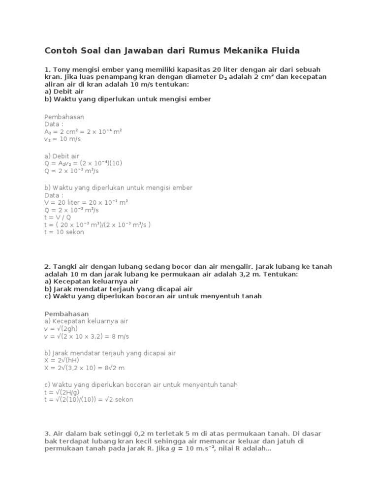 44+ Contoh Soal Tentang Debit Fluida. Besar debit aliran fluida dapat dicari dengan menggunakan satu dari dua formula ini: Rangkuman materi fluida dinamis kelas 11. Debit merupakan banyaknya volume air yang mengalir melalui suatu penampang persatuan waktu. A.q = a/t b.q = a.v c.q = . Hal itu disebabkan oleh fenomena hukum kontinuitas pada fluida yang mengalir. Rangkuman fluida dinamis, contoh soal & pembahasan. Contoh soal fluida dinamis dan pembahasan. Soal fluida dinamis tentang air terjun yang jatuh pada kincir air sehingga kincir berputar pada kumparan listrik. Kumparan listrik ini mengubah energi . Berikut adalah soal dan penyelesaian fisika tentang soal fluida dinamis yang pak dimpun.