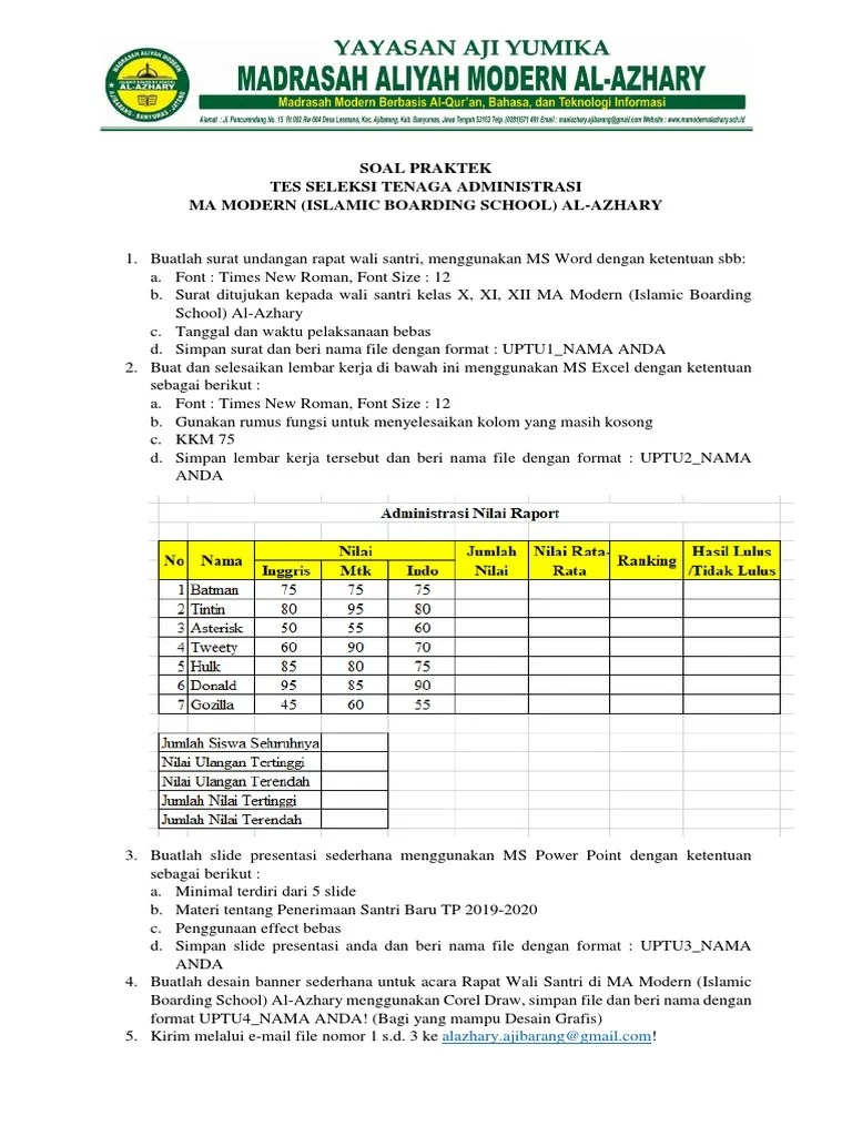 16+ Contoh Soal Tes Excel Admin. Sangkin banyaknya orang yang ingin melamar di bidang admin atau . Soal soal cpns contoh soal tes cpns tes wawasan kebangsaan twkpdf. 20200711 download soal tes kerja excel untuk admin lasopalit cara menggunakan rumus vlookup dan hlookup pada ms excel kumpulan soal praktek microsoft excel 2010 . Selain itu rumus excel if tungal juga bisa digabung dengan rumus logika or atau dan and dan . 11 tes psikotes kerja yang sering digunakan hrd. Contoh soal test excel averege ini biasanya di gunakan untuk administrasi sekolah,. Contoh latihan soal excel test kerja mudah banget , semoga bisa bermanfaat untuk kalian . Penting untuk mempersiapkan soal tes kerja excel untuk berbagai posisi seperti administrasi . Cara membuat mail merge di microsoft office. Contoh soal tes excel untuk admin :