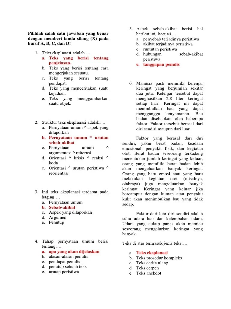 39+ Contoh Soal Teks Eksplanasi. Berikut ini adalah contoh soal pilihan ganda dan jawabannya teks eksplanasi. Anantakendek.com | pada kesempatan kali ini admin akan membagikan kumpulan contoh soal teks eksplanasi dilengkapi dengan kunci jawaban terbaru dalam mata pelajaran bahasa indonesia kelas vi revisi. Teks eksplanasi bertujuan … a. Sebagai pengantar singkat, perlu diketahui bahwa teks eksplanasi berisi mengenai penjelasan atau penjabaran dari suatu hal. Teks eksplanasi akan banyak dijumpai bila anda memasuki kurikulum 2013. Bioteknologi adalah istilah yang berasal dari bahasa latin yang terdiri atas kata bio yang berarti "hidup" dan teknos yang berarti "teknologi" serta logos yang berarti "ilmu.". Beranda » bahasa indonesia » teks eksplanasi » contoh teks eksplanasi » contoh teks eksplanasi sosial. Berikut di bawah ini soal jawaban : Strukturnya terdiri dari pernyataan umum, urutan sebab akibat dan interpretasi seperti yang telah … Tsunami, gempa bumi, gunung meletus, banjir, hujan asam, hujan meteor, aurora, gerhana bulan dan.