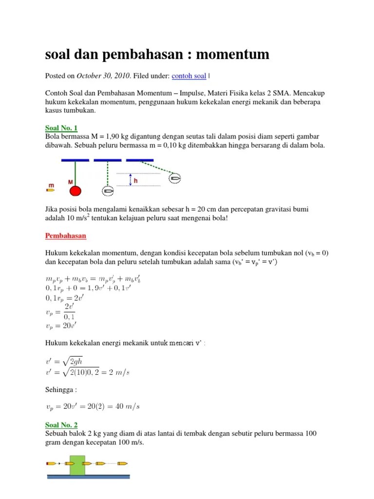 28+ Contoh Soal Momentum. 19/11/2016 · berikut ini beberapa contoh soal mengenai impuls, momentum dan tumbukan beserta pembahasannya. 10/08/2021 · berikut informasi sepenuhnya tentang 10 contoh momentum dalam kehidupan sehari hari. 22/07/2020 · p = momentum ( kg.m/s ) m = massa benda ( kg ) v = kecepatan benda ( m/s ) contoh soal momentum. Benda b yang bermassa 7 kg bergerak kekiri dengan kelajuan 4 m/s. V = 108 km/jam di konversi ke m/s maka 108000/3600 = … V p = momentum (kg.m/s) m = massa (kg) Contoh soal 1 sebuah benda mempunyai massa 2,5 kg. Contoh soal momentum berikut ini kakak tampilkan beberapa contoh soal yang berkaitan dengan momentum: Dua buah bola bergerak berlawanan arah seperti pada gambar di bawah ini. Budi memiliki badan yang gemuk dengan berat badan 100 kg berlari dengan kecepatan tetap yaitu 108 km/jam.