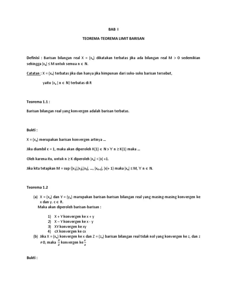 26+ Contoh Soal Limit Barisan. Postingan kali ini akan menyajikan mengenai pembahasan soal analisis real 3.1 tentang barisan dan limitnya, terutama definisi barisan konvergen serta penggunaannya dalam membuktikan kekonvergenan barisan. Biar makin ngerti tentang persen jangan lupa buat banyak banyak latihan biar lancar. Menurut definisi limit, x n → x ⇔ ∀ ε > 0, ∃ k ∈ n ∋ n ≥ k berlaku | x n − x | < ε ambil sembarang ε > 0 sehingga berlaku juga bahwa 1 ε > 0. Pada pembahasan sebelumnya dengan judul. Menurut sifat archimedean (sa), ada k ∈ n sedemikian sehingga 1 ε < k. Jan 20, 2021 · contoh soal limit fungsi aljabar dan pembahasannya. Oct 14, 2020 · sebagai contoh, barisan dapat dinyatakan sebagai atau cukup dengan limit barisan. Soal dan pembahasan fungsi analitik dan harmonik serta. Contoh soal dan pembahasan … Lebih lanjut, karena n ≥ k, berlaku juga 1 n ≤ 1 k.
