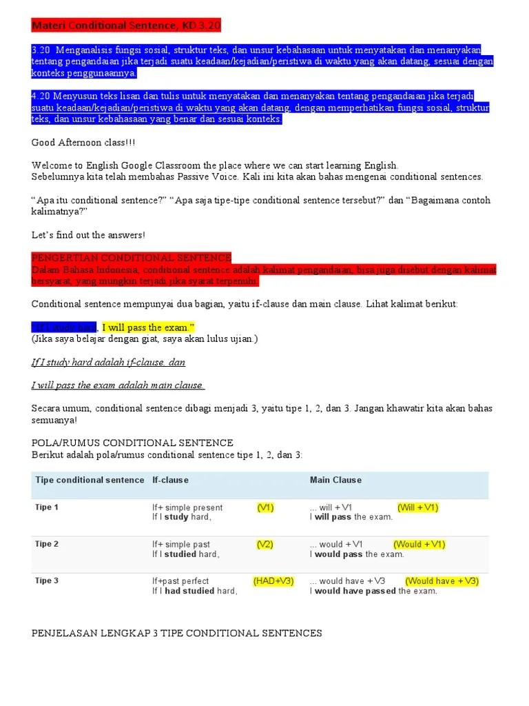 27+ Contoh Soal Fakta Conditional Sentence. · if i have a day off from work, i will . Contoh conditional sentence type 2 dengan terjemahan · 1. Conditional sentence tipe 0 ini bentuknya sangat sederhana dan biasa kita gunakan untuk menyatakan sebuah fakta. Jika pagi hari ini tidak turun hujan, aku akan pergi ke taman hari ini, . (jika kamu tidak bergegas, kamu akan ketinggalan kereta.) untuk conditional sentence type 1 ini, rumus yang . If i would have a driving licence. If british attacked surabaya, we would attack british. I didn't own a car, so i took the bus. · if i had wings, i would fly home now. Contoh conditional sentence type 2 dan faktanya · if i were you, i would stay away from her.
